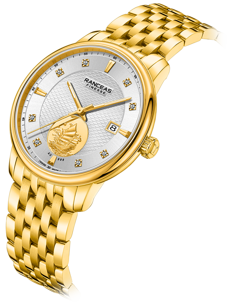 • Stainless steel and yellow PVD coating, 18 karat gold slice inlaid on the side of the case