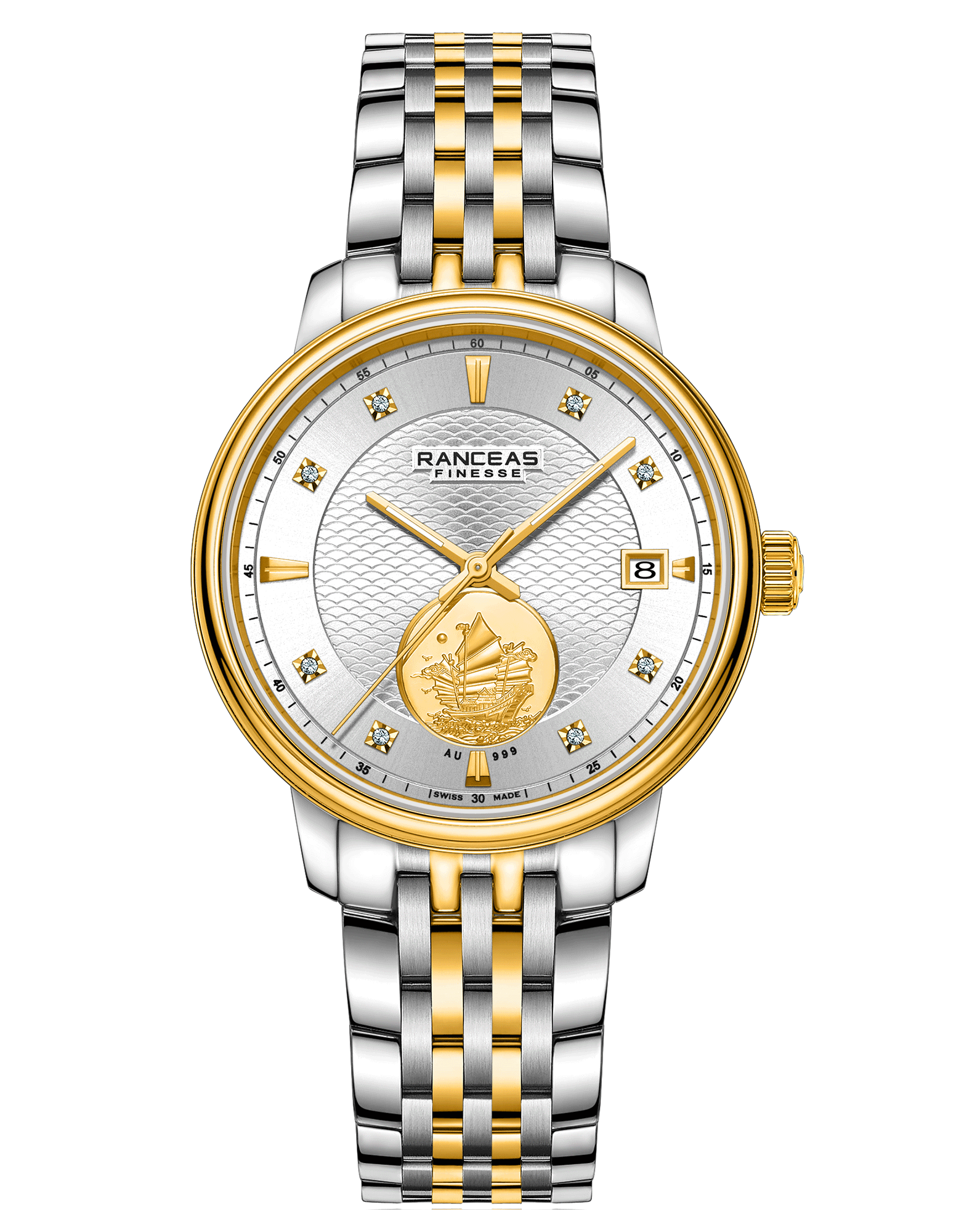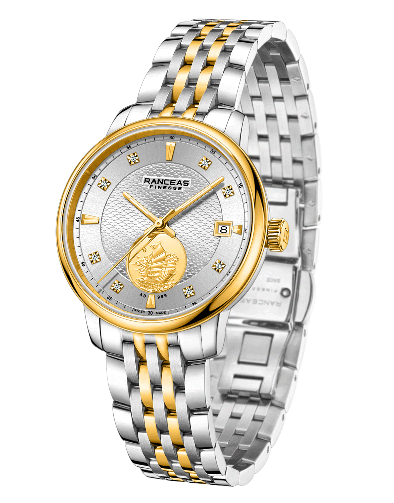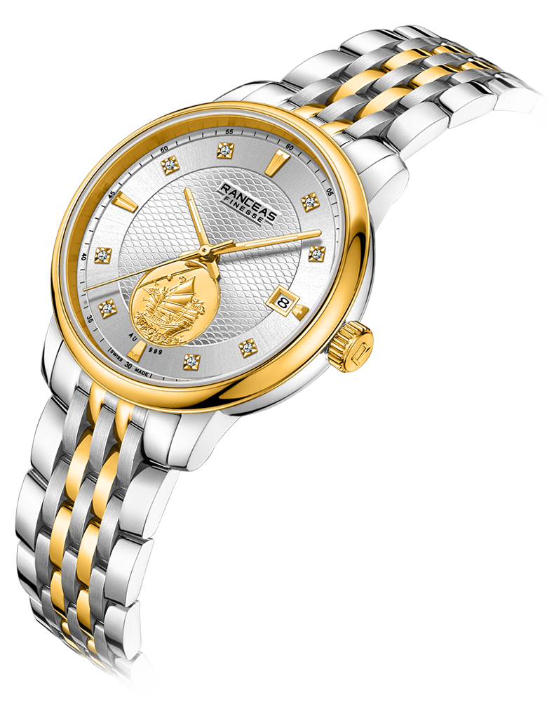 • Stainless steel and yellow PVD coating, 18 karat gold slice inlaid on the side of the case