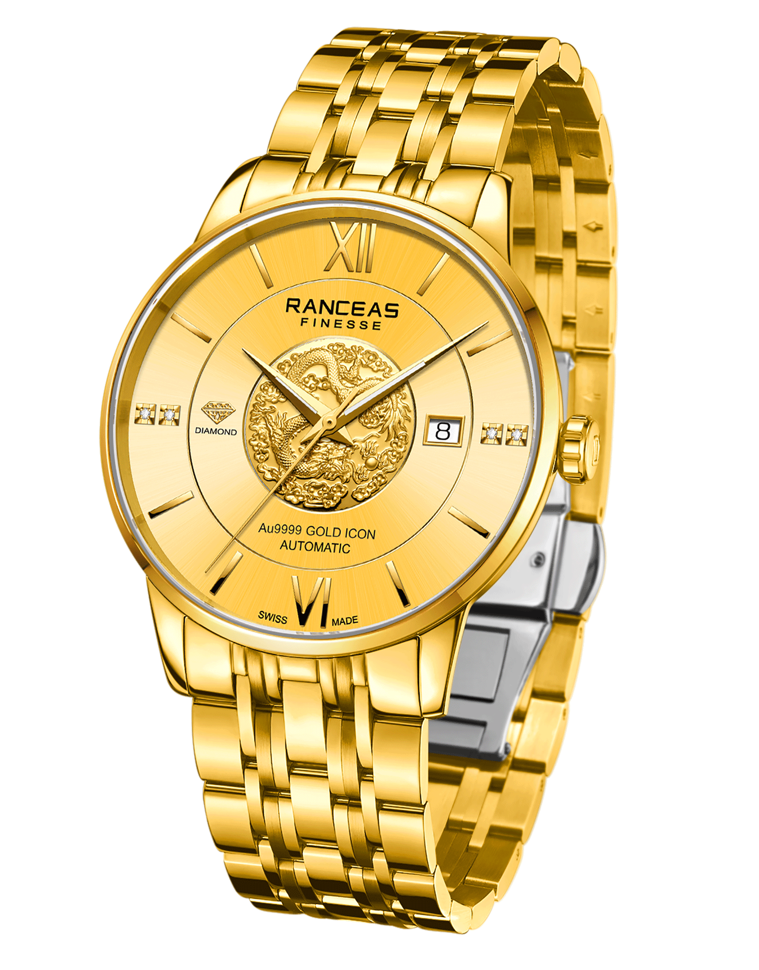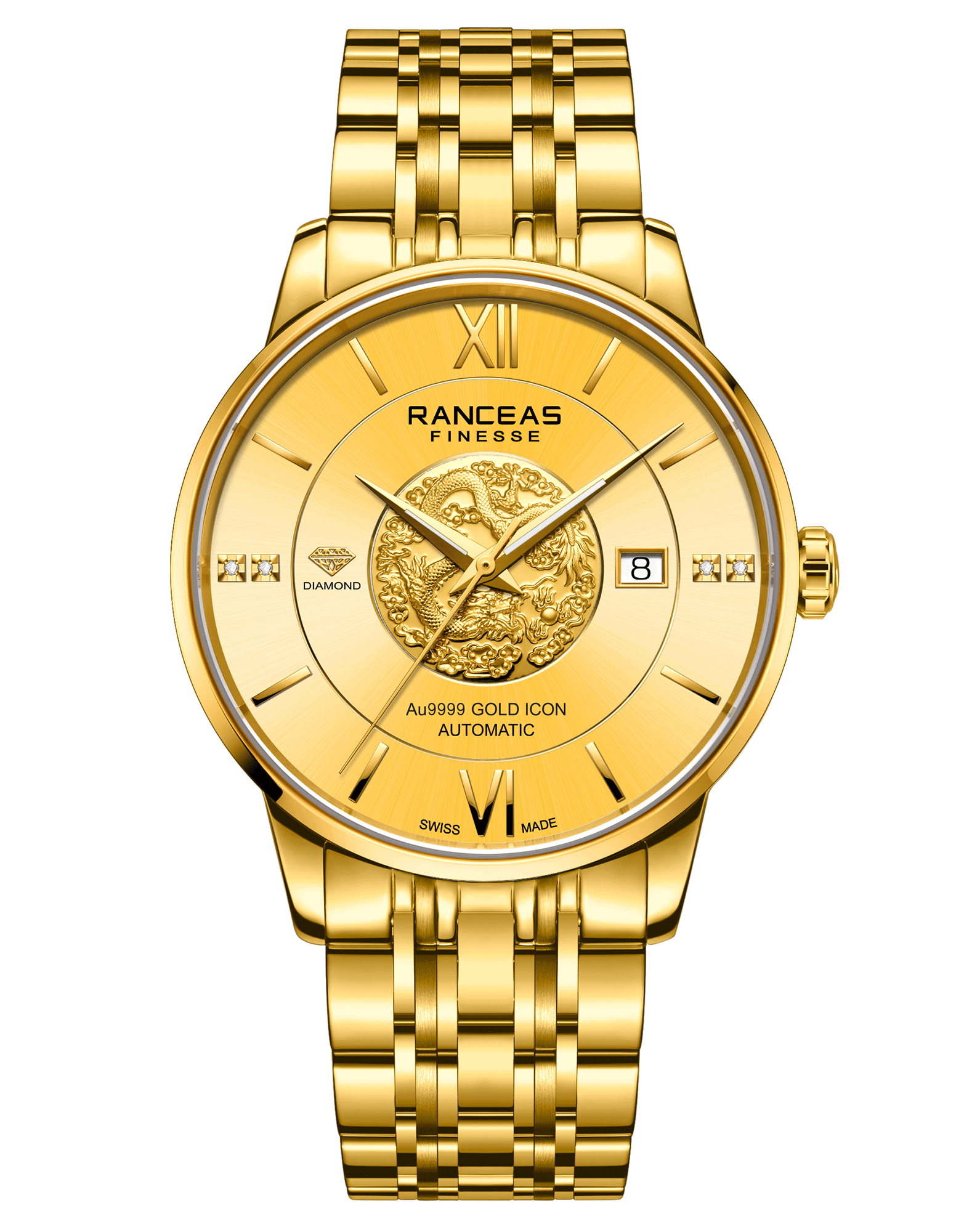 Gilt matt and 24K gold chip with dragon pattern inlaid