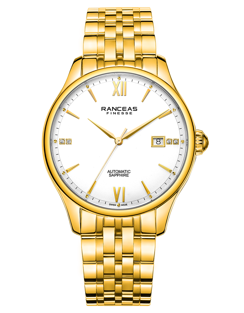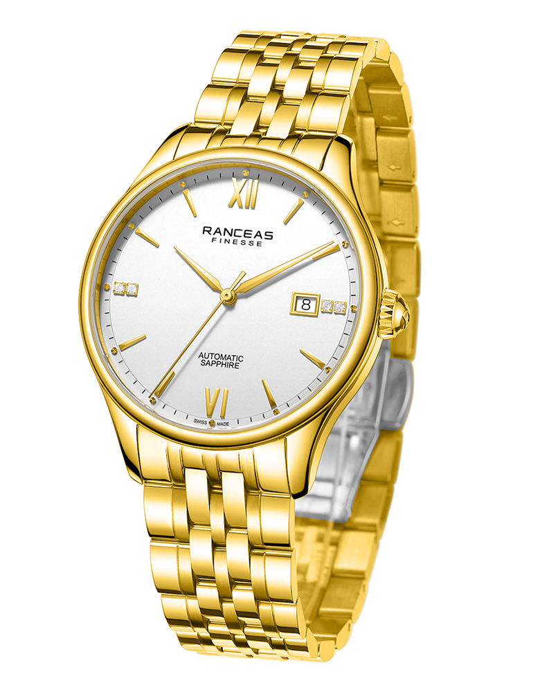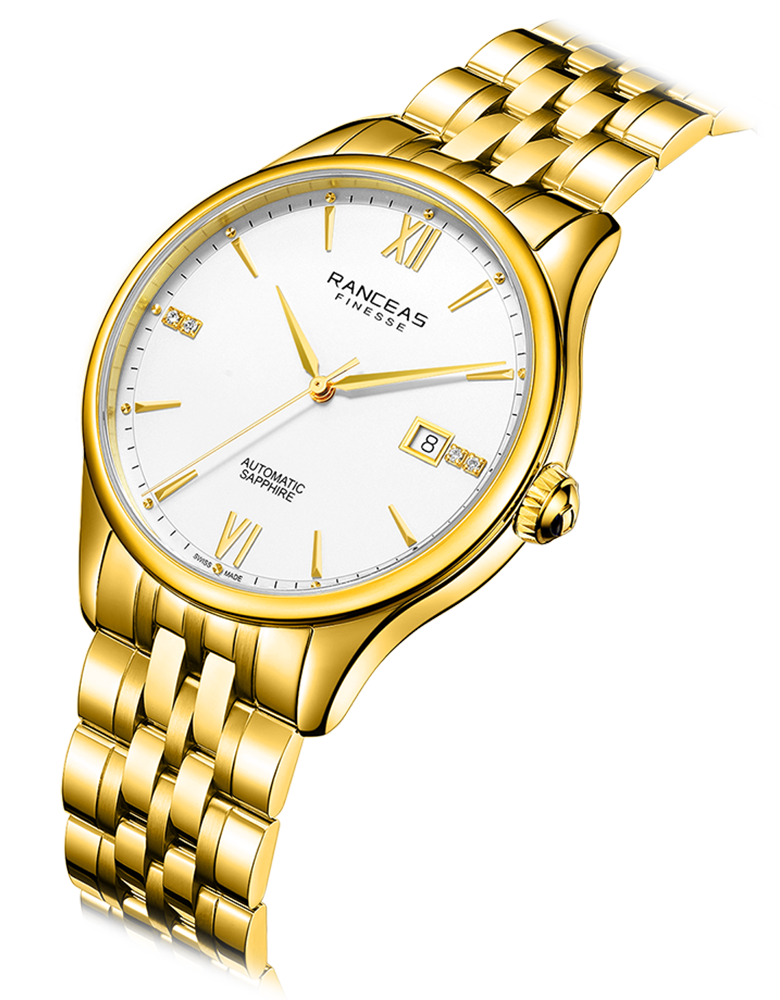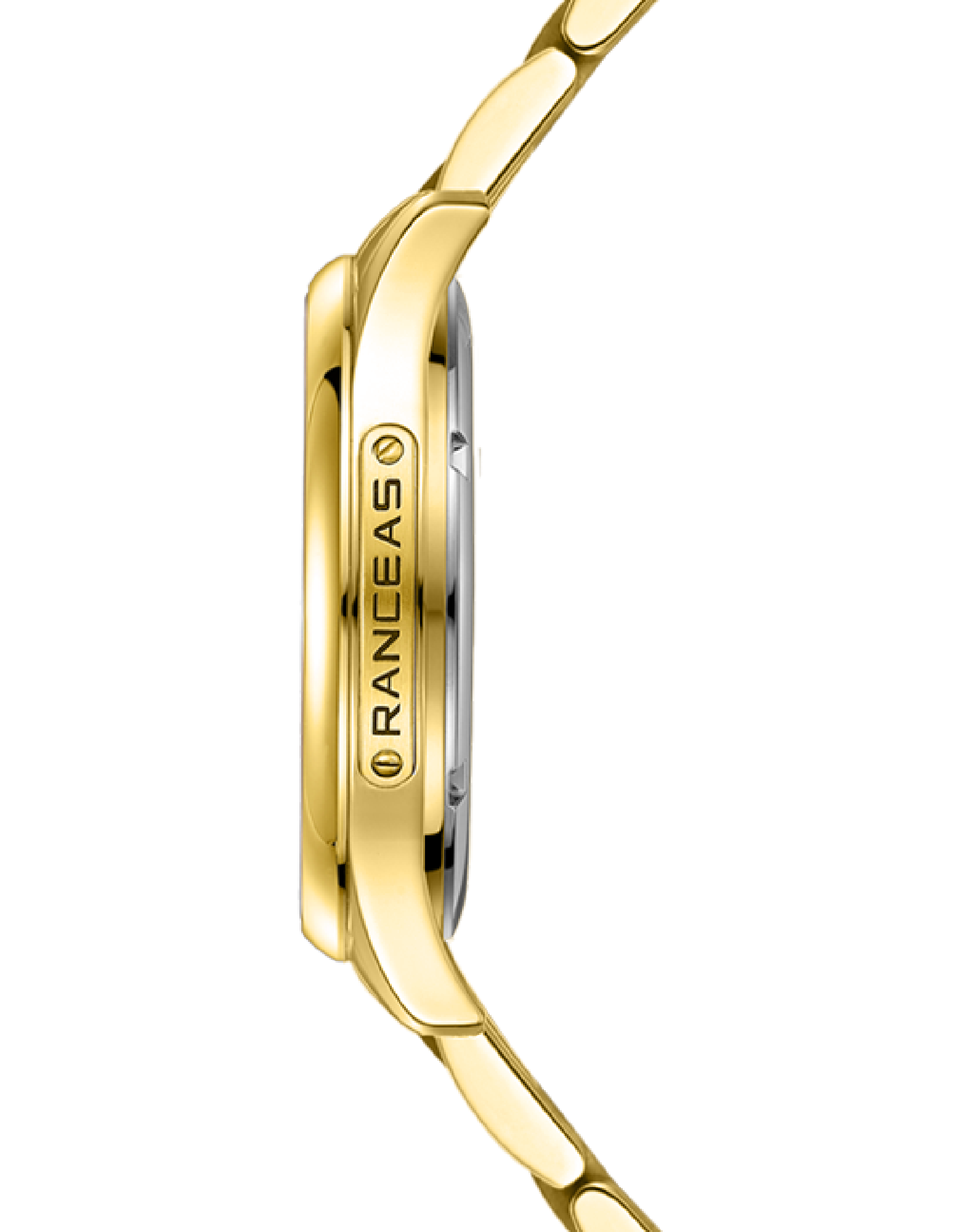 • Stainless steel and yellow PVD coating, 18 karat gold slice inlaid on the side of the case