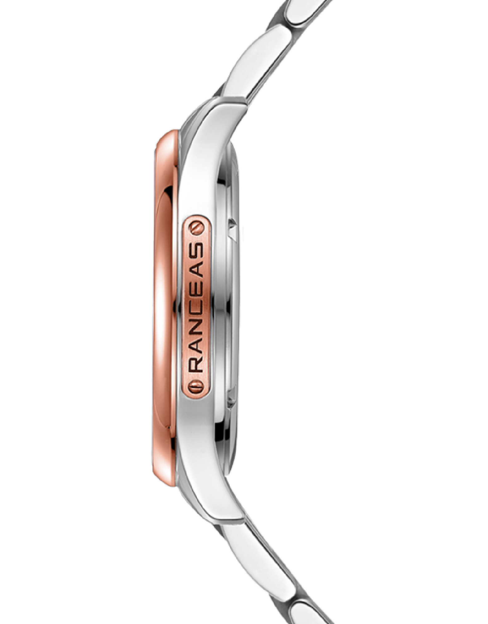 Stainless steel and Red PVD coating, 18 karat gold slice inlaid on the side of the case