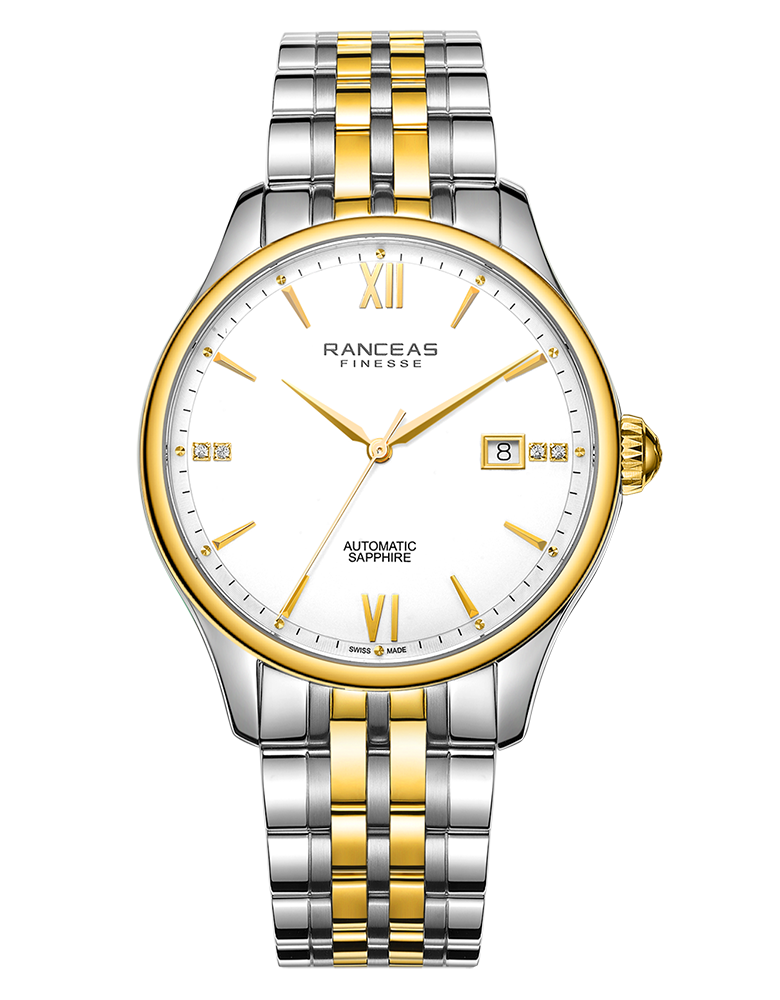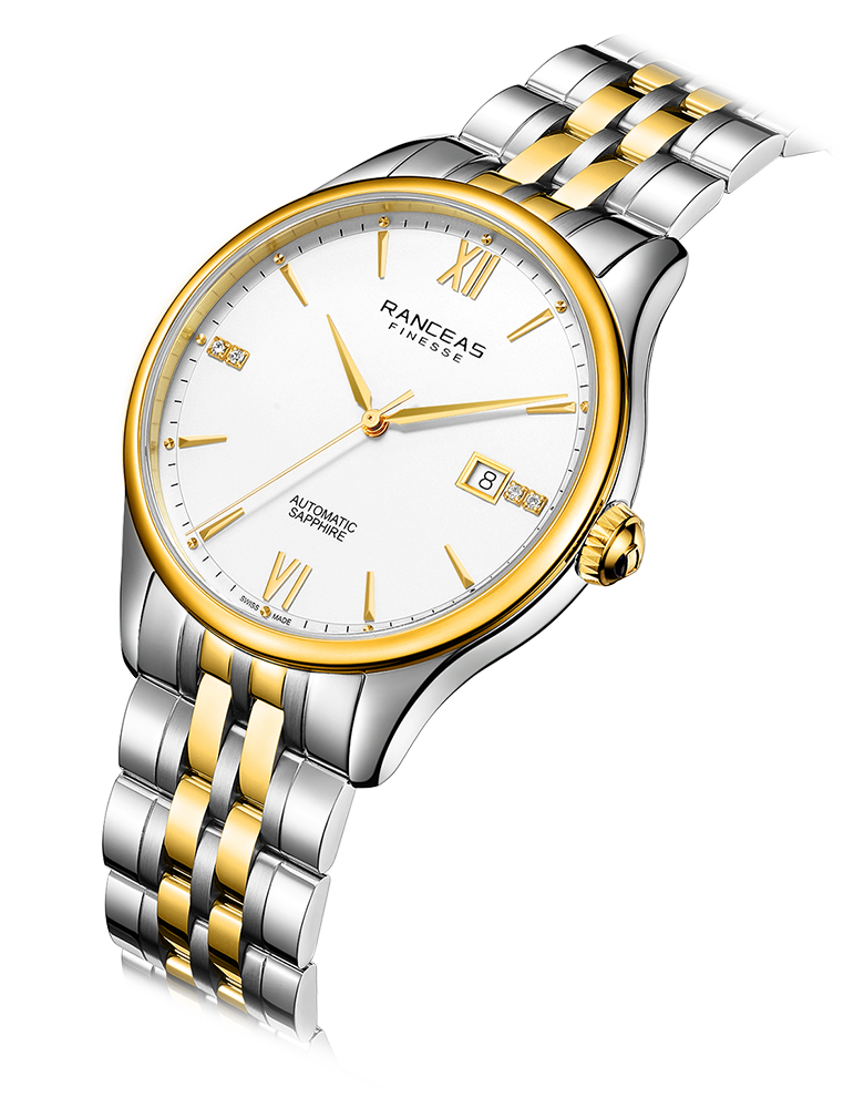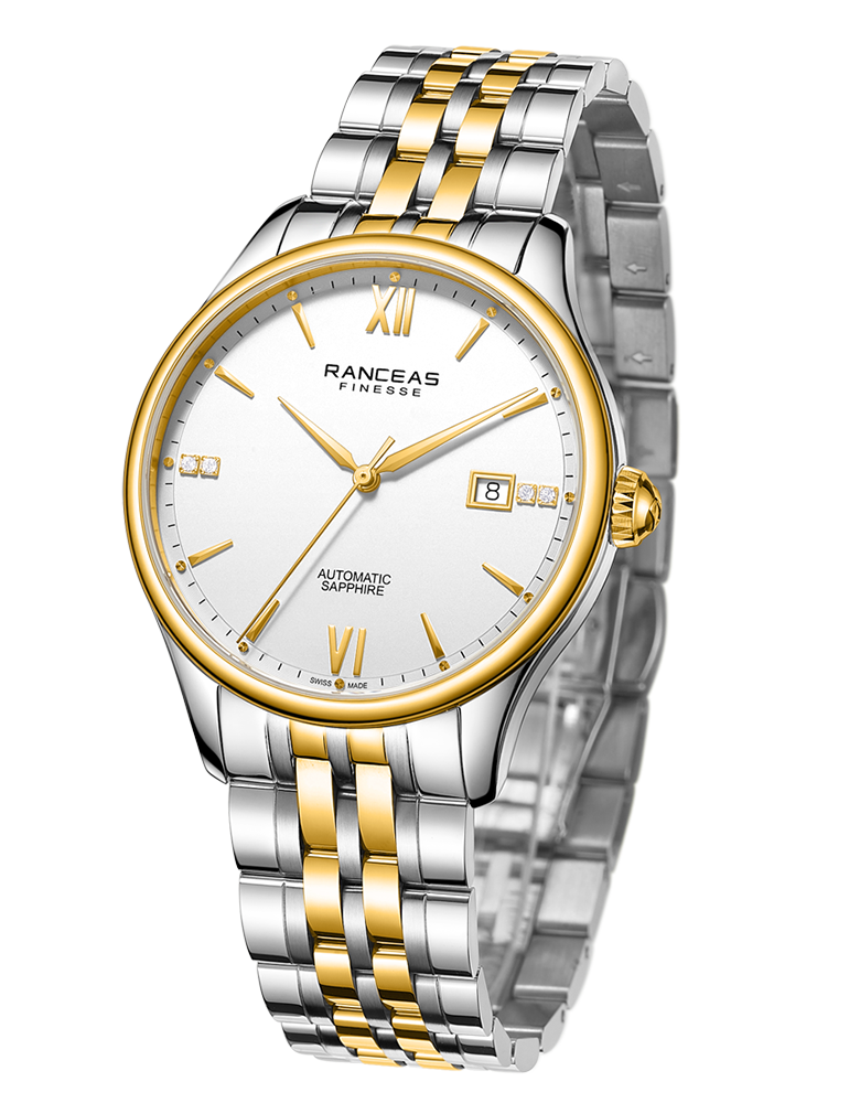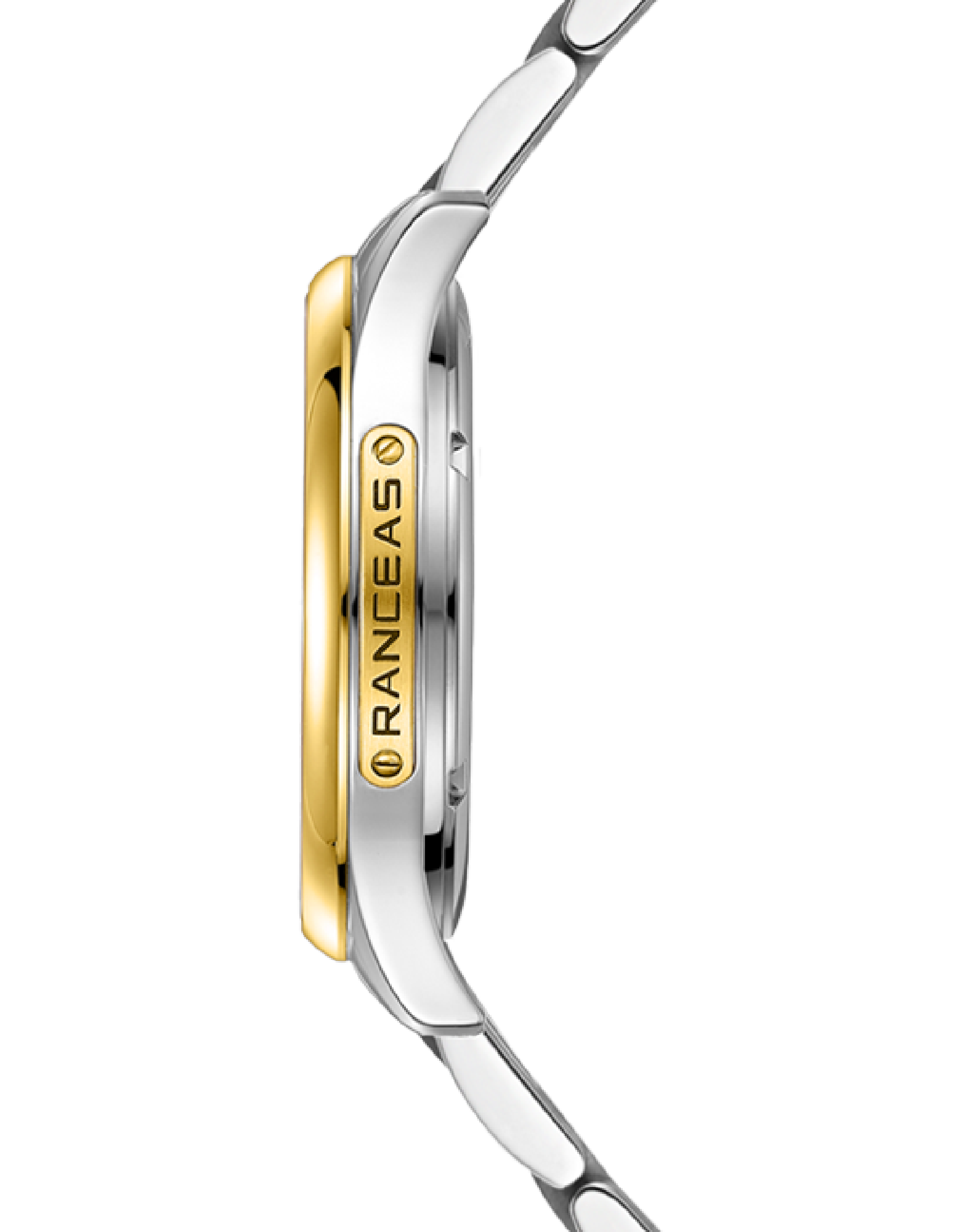 Stainless steel and yellow PVD coating, 18 karat gold slice inlaid on the side of the case