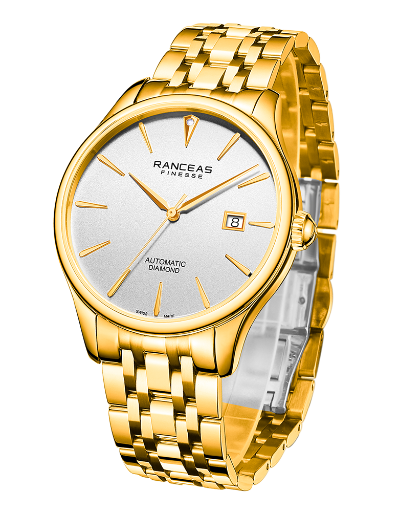 Stainless steel and yellow PVD coating, 18 karat gold slice inlaid on the side of the case