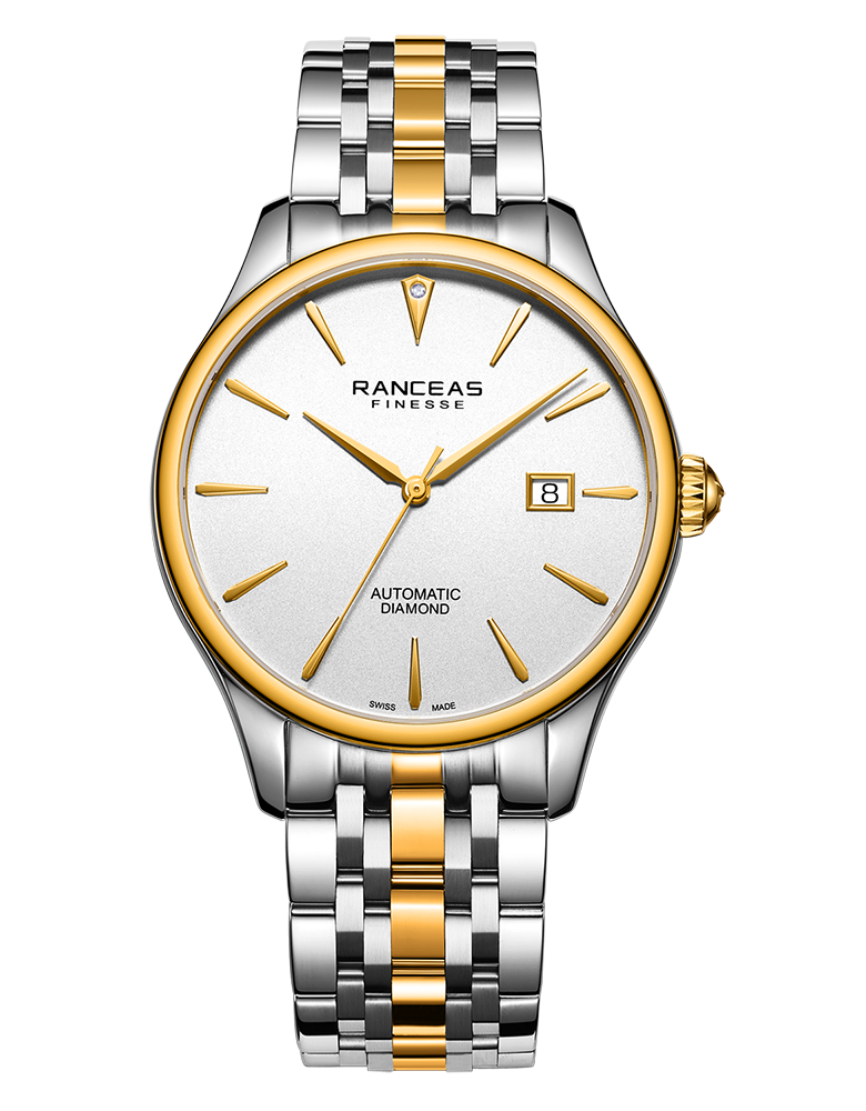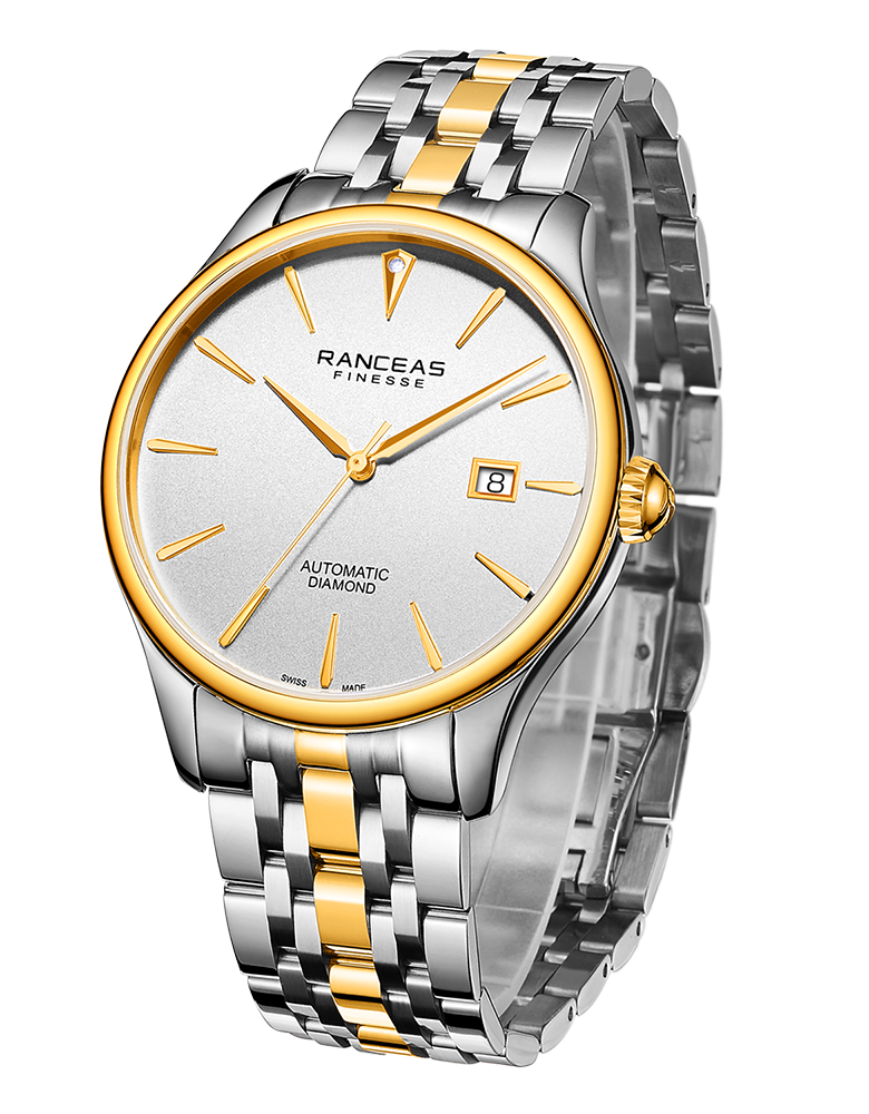 Stainless steel and yellow PVD coating, 18 karat gold slice inlaid on the side of the case