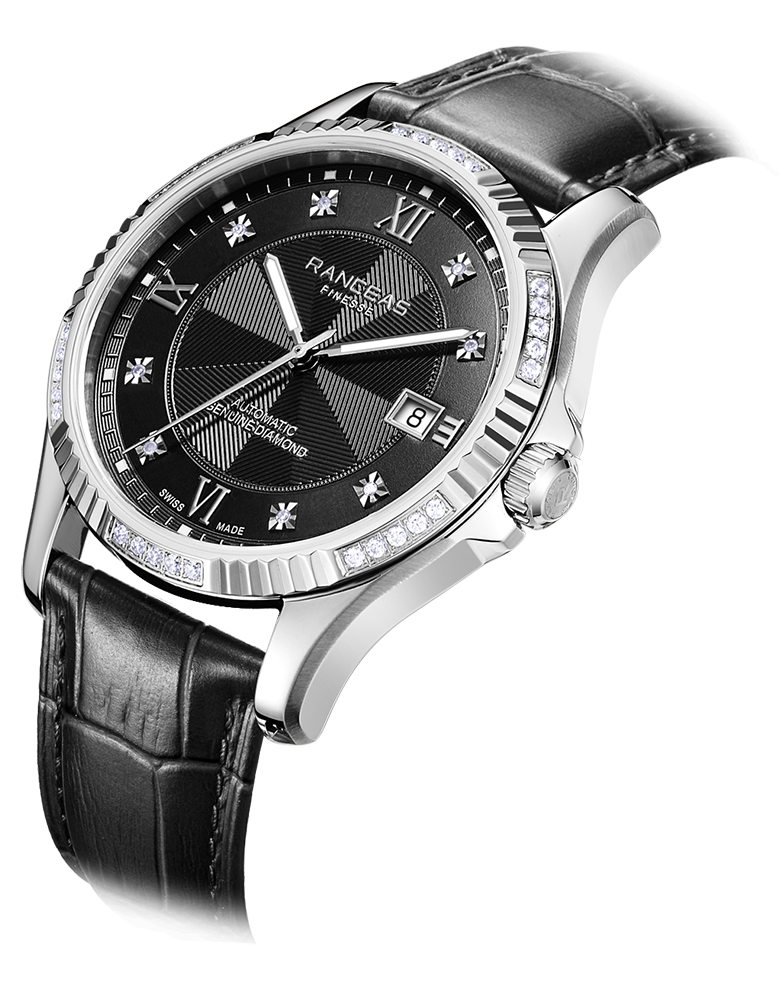 Roman numerals and Inlaid with 8 genuine diamonds